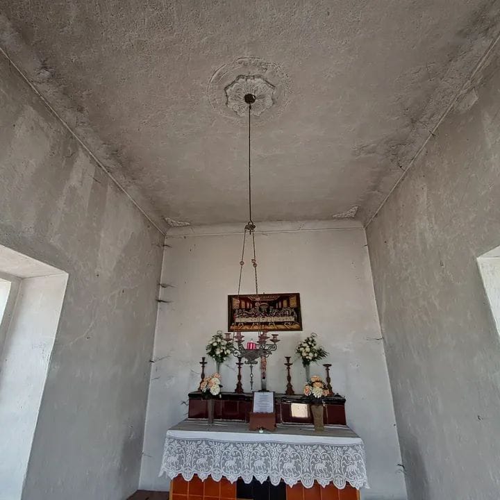 Ficaram completamente negras as paredes e o tecto da capela do Cemitério de Alpalhão, devido às chamas provocadas por uma vela a arder.