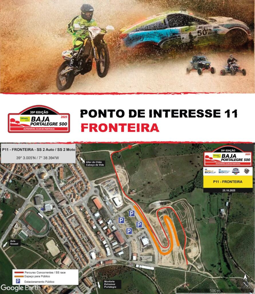 Fronteira volta a receber a Baja Portalegre 500 no próximo dia 25 de Outubro. O concelho será ponto de passagem da competição, com destaque para o Ponto de Interesse 11, localizado no espaço das bp Ultimate 24 Horas TT Vila de Fronteira, junto às boxes, com acesso pela Zona Industrial.