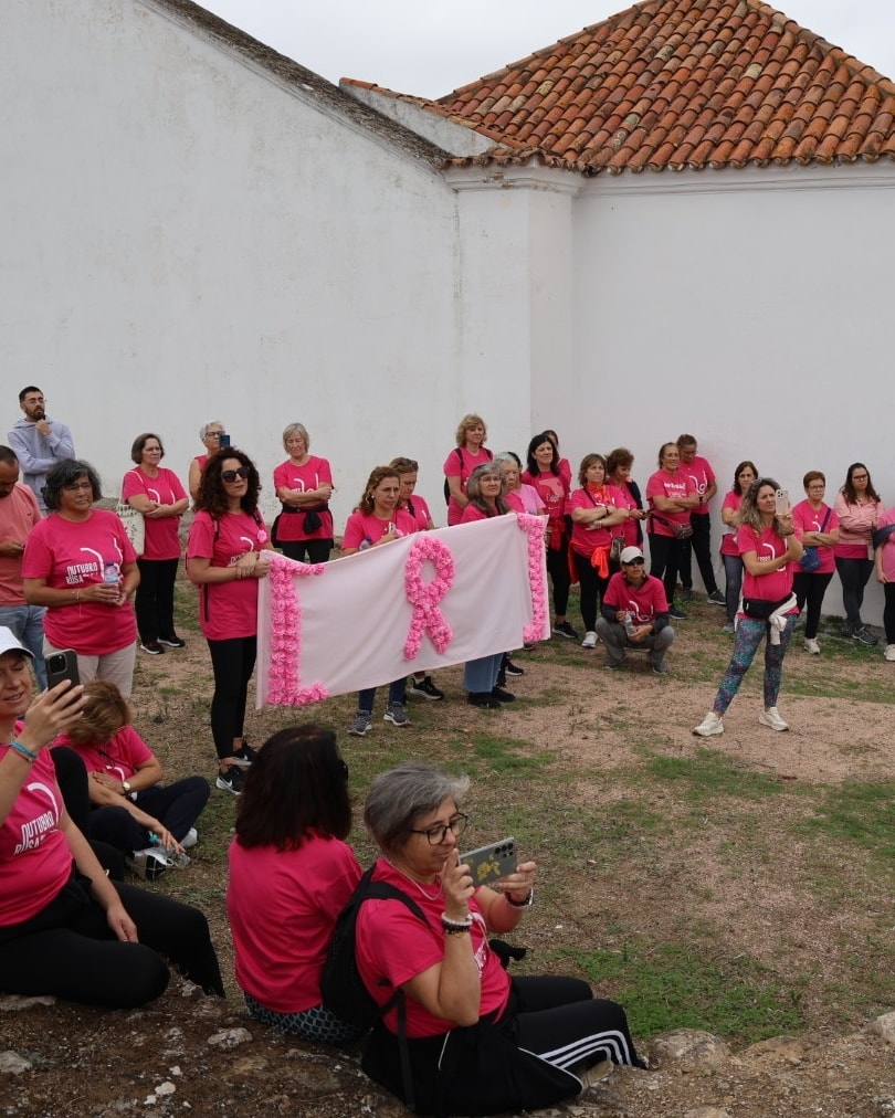 Um dos momentos mais simbólicos da caminhada foi a construção do laço cor-de-rosa, símbolo internacional da luta contra o cancro da mama, no Baluarte de S. Sebastião. Já no interior do Castelo, Ana Diabinho apresentou um momento de poesia dedicado à temática da esperança e da superação.