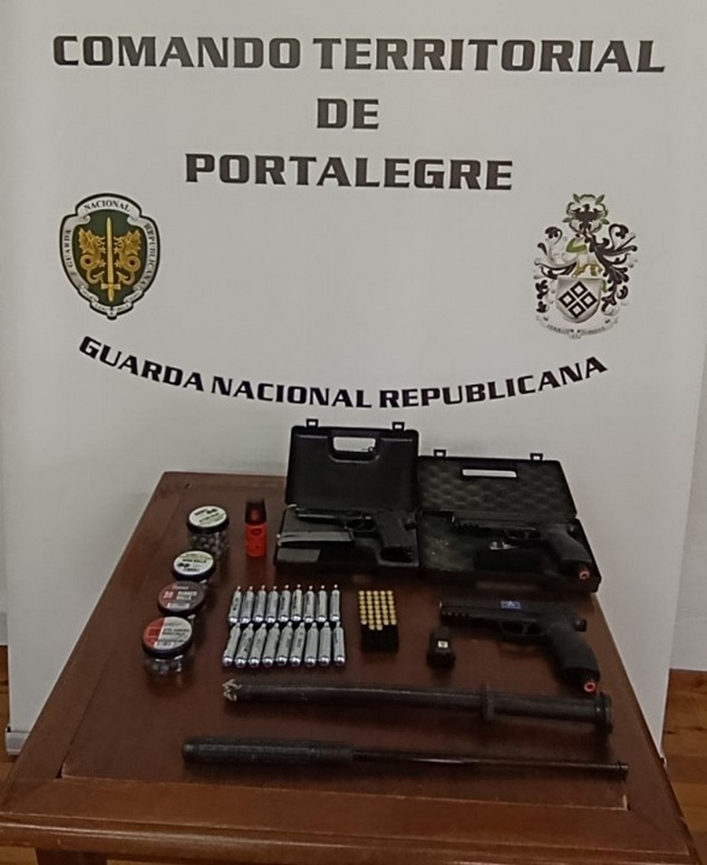 Durante a operação foi realizada uma busca domiciliária, que permitiu a apreensão de uma pistola de alarme, duas pistolas de ar comprimido, um bastão extensível e outro de borracha, 37 munições de salva, 175 esferas de borracha, várias botijas de CO₂, um acessório de laser para arma de fogo e uma embalagem de gás pimenta.