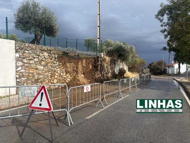Um troço da antiga Estrada Nacional 4, junto ao Continente, na cidade de Elvas, ficou cortado à circulação automóvel na manhã desta quarta-feira, dia 5 de Novembro, depois de um muro ter desabado como consequência do mau tempo que se abateu na região.