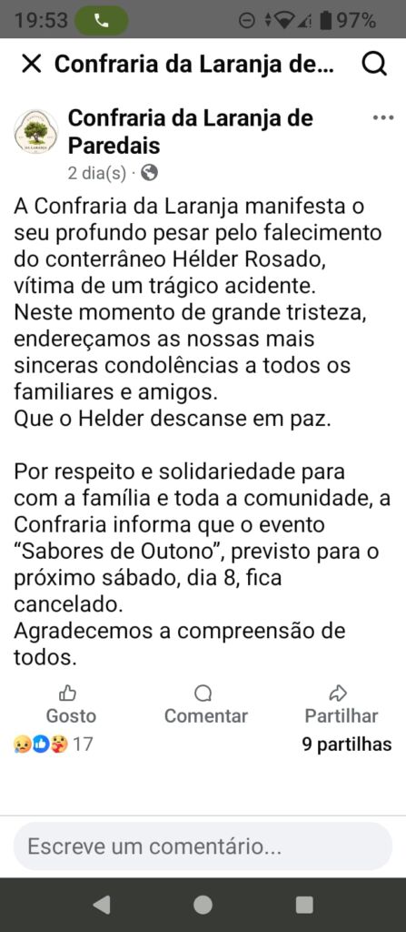 A Associação Liga de Amigos de Pardais já manifestou o seu profundo pesar pelo falecimento do antigo sócio e eterno amigo Hélder Rosado.