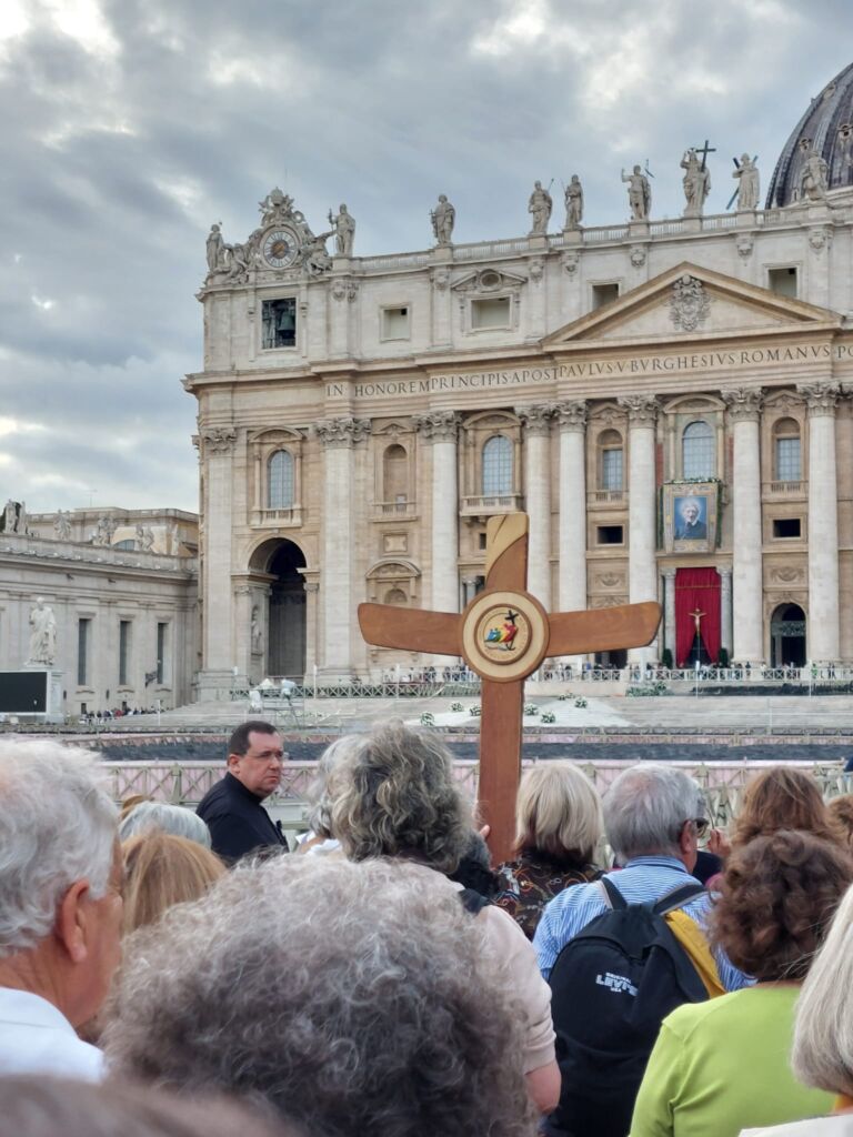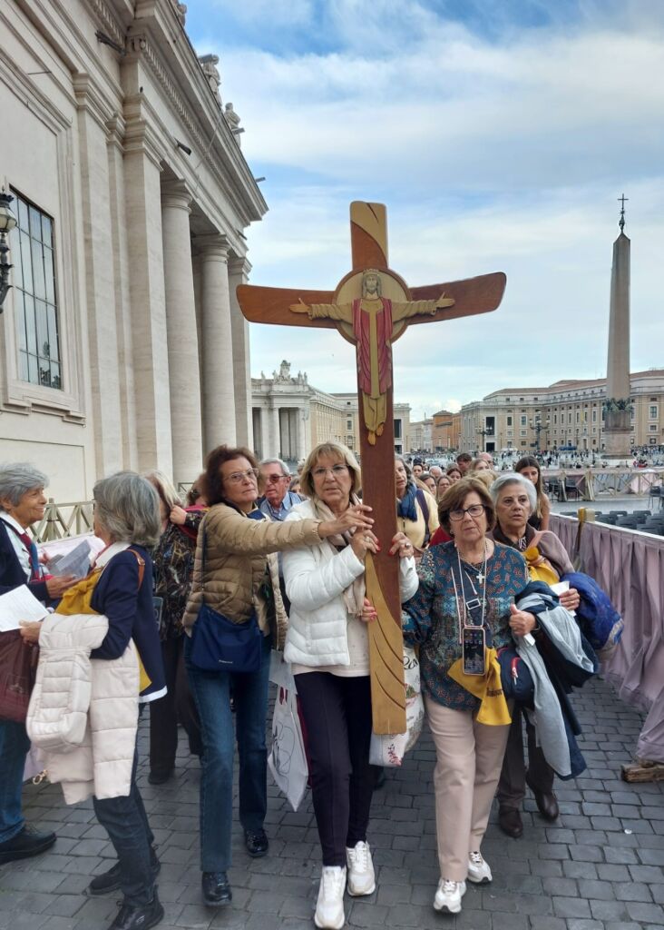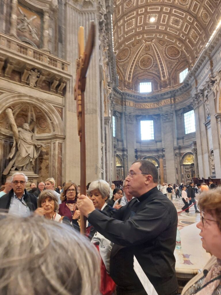 Muito significativa foi, para nós, a Peregrinação que fizemos desde a Porta Pia até à Basílica de S. Pedro, com a Cruz Jubilar, que todos alternadamente foram levando, realizando a celebração que nos foi proposta pela organização, cantando o hino do Jubileu e outros cânticos bem portugueses como o Ave de Fátima e “nossa Senhora da Conceição”, e em silêncio profundo, passamos na Porta Santa da Basílica onde logo nos acolheu a “Pietá” de Miguel Ângelo e, no altar da Confissão professamos a nossa Fé rezando o Credo ou símbolo dos apóstolos e rezamos pelas intenções do Santo padre, o papa Leão XIV.