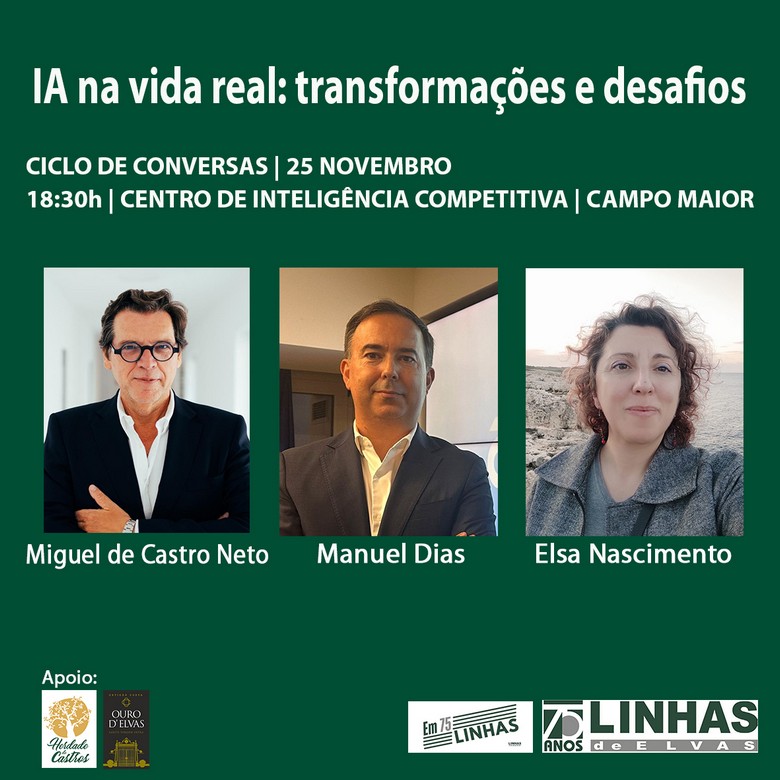 Desta feita, o tema será “IA na vida real: transformações e desafios” e terá como convidados Miguel de Castro Neto (director da NOVA Information Management School), Manuel Dias (director de Sistemas e Tecnologias de Informação da Administração Pública) e Elsa Nascimento (professora de Biologia e Geologia).