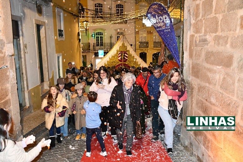 Depois de accionado o interruptor que acendeu a iluminação ornamental das principais ruas do Centro Histórico, o público acompanhou a actuação das Roncas d’Elvas, da associação Arkus, que animaram o percurso entre a Rua da Cadeia e a Praça da República.