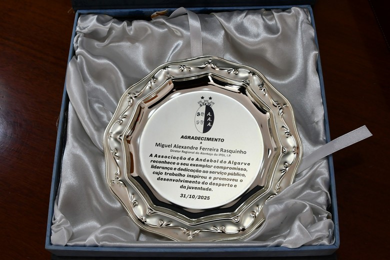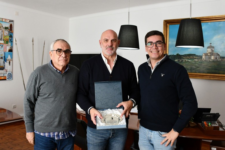Durante a visita, João Estrela ofereceu a Miguel Rasquinho uma salva, simbolizando a admiração pelo contributo prestado ao desenvolvimento desportivo e associativo.
