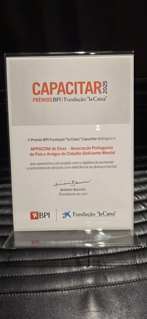 A APPACDM de Elvas foi uma das entidades distinguidas no dia 4 de Dezembro com o Prémio BPI Fundação “la Caixa” Capacitar 2025. A distinção deve-se ao projeto “Viver + – lazer inclusivo – apoio às famílias” que procura promover a autonomia de pessoas com deficiência ou doença mental, oferecendo simultaneamente suporte aos seus cuidadores.