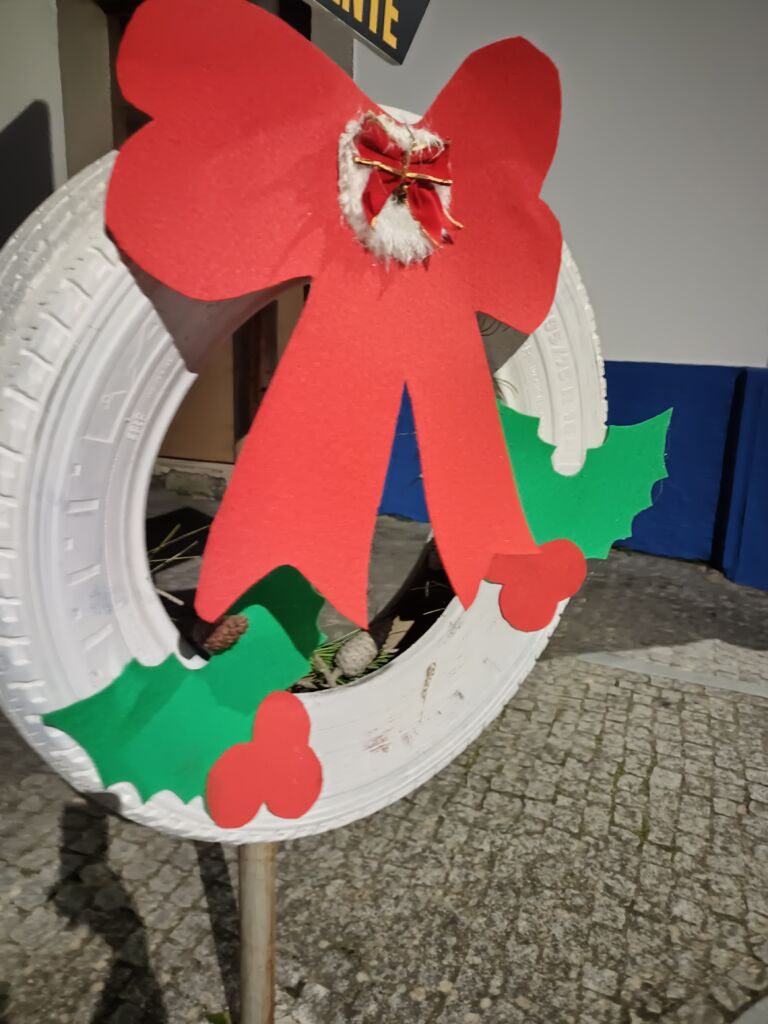 Pneus usados, cartão, plástico e outros materiais, ganharam feição de árvores de Natal, coroas de azevinho, laços, velas, pais Natal e bonecos de Neve, obsequiando os residentes e os visitantes com uma verdadeira exposição de artesanato a céu aberto.