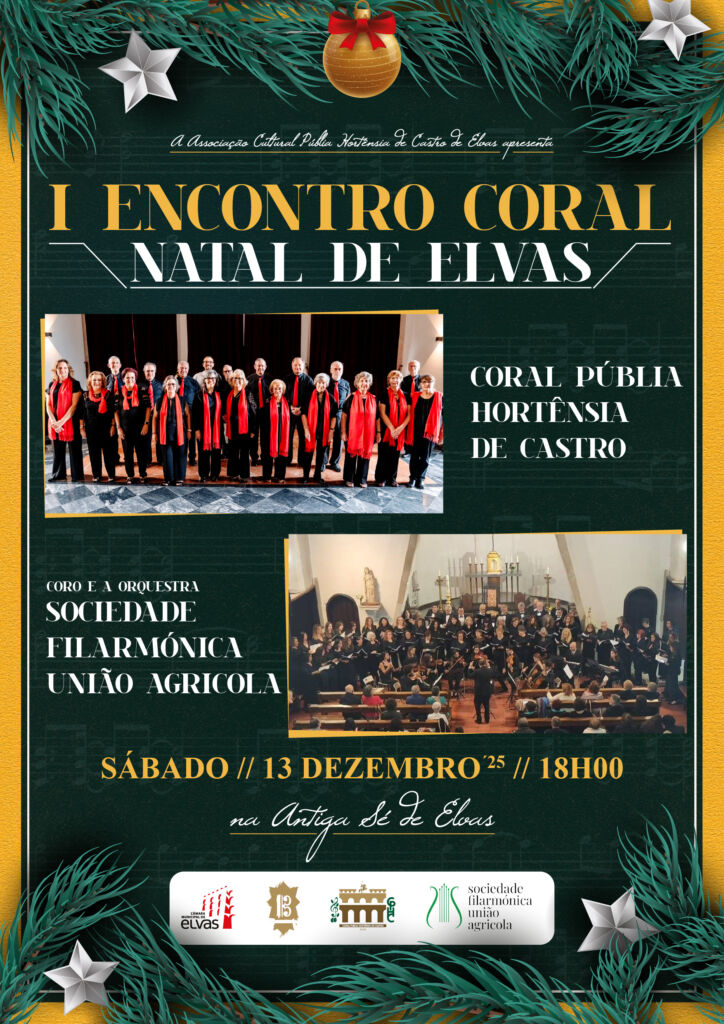 O Coral Públia Hortênsia de Castro inicia hoje o seu programa de Natal às 18h00, na Antiga Sé de Elvas. O I Encontro Coral – Natal de Elvas é o espetáculo inaugural da formação para esta quadra natalícia e conta com a participação especial do SFUA, de Pinhal Novo. Este encontro reunirá cerca de 85 vozes e 15 músicos da orquestra, num momento marcante de celebração do Natal. O espetáculo terminará com a interpretação conjunta do tema “Natal de Elvas”.