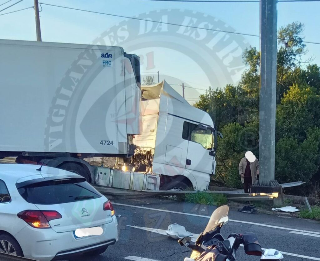 Na sequência da colisão, a via ficou totalmente ocupada, condicionando a circulação rodoviária no local. .