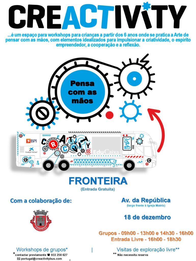 No próximo dia 18 de Dezembro, o concelho de Fronteira recebe o Creactivity, um espaço interativo e itinerante dedicado ao desenvolvimento da criatividade, da engenhosidade e do trabalho em equipa entre crianças.