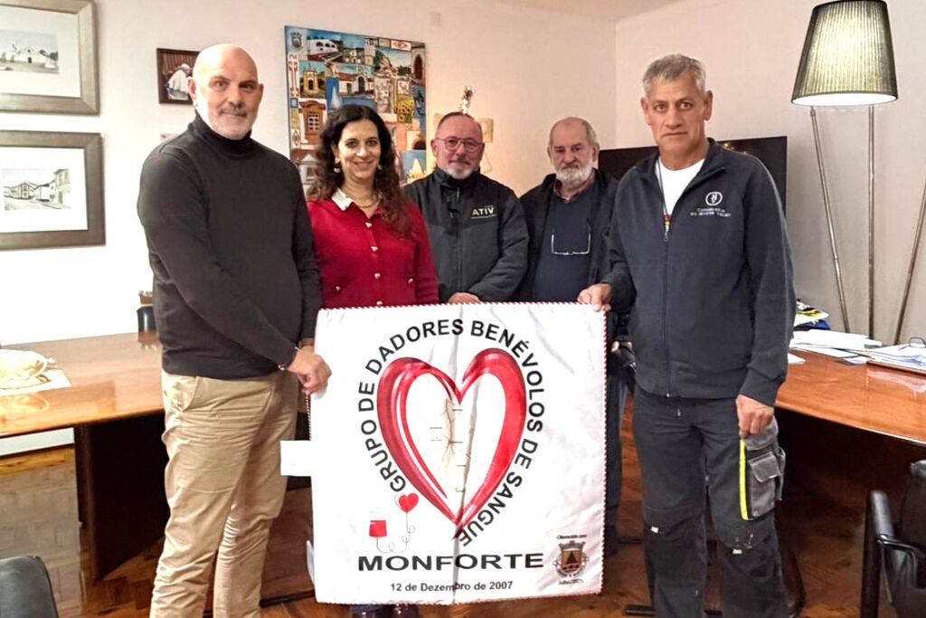 O Presidente da Câmara Municipal de Monforte, Miguel Rasquinho, acompanhado pela Vice-Presidente, Raquel Pereira, recebeu no seu gabinete, no passado dia 15, o Presidente da Direção da Associação de Dadores Benévolos de Sangue de Portalegre, Carlos Alberto Eustáquio, e o Vice-Presidente, Paulo Cardoso, bem como João Manuel Gonçalves, um dos dinamizadores do Grupo de Dadores Benévolos de Sangue de Monforte.
