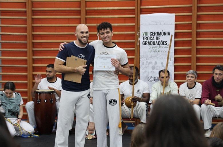 A cerimónia contou com a presença do presidente do Município, Luís Rosinha, que acompanhou este momento simbólico da Escola de Capoeira.