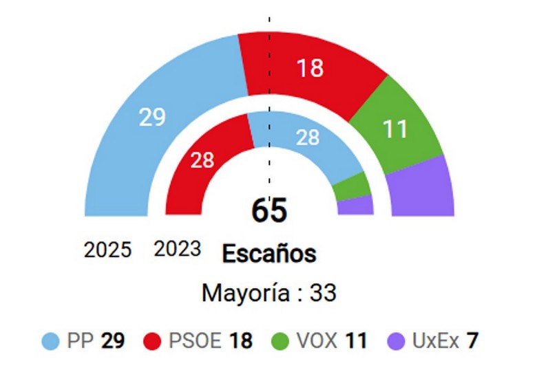 Nunca a direita e a extrema-direita tinham tido uma representação tão grande no parlamento da Extremadura, depois de terem em 2023 conseguido, pela primeira vez, superar o conjunto de todos os partidos de esquerda.