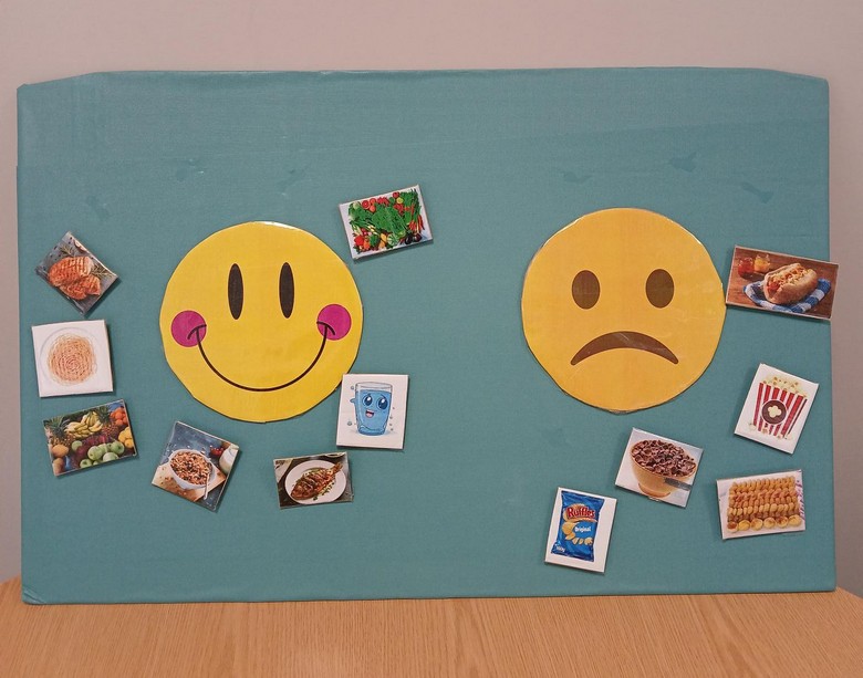 A actividade decorreu de forma lúdica e interactiva, adequada à faixa etária dos petizes. Foram abordados os temas de forma simples, identificando os alimentos saudáveis e os não saudáveis. Foi contada também uma história alusiva à temática.