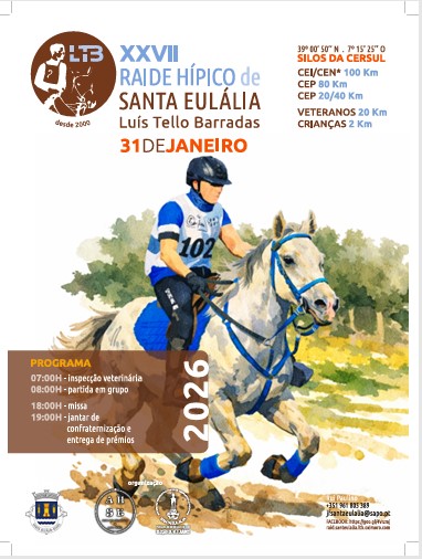 O XXVII Raide Hípico de Santa Eulália Luís Tello Barradas realiza-se a 31 de Janeiro.