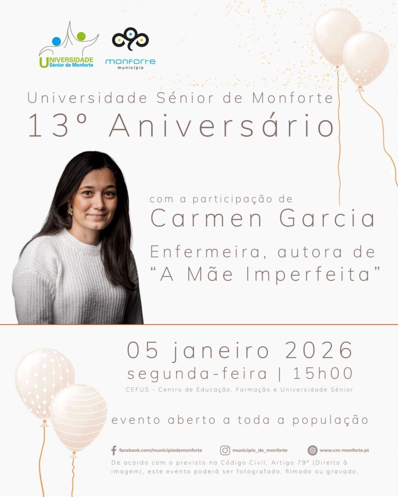 A comemoração pretende, assim, assinalar mais de uma década de atividade da Universidade Sénior de Monforte, instituição que tem desempenhado um papel relevante na promoção do envelhecimento ativo, da formação contínua e do convívio social da população sénior do concelho.