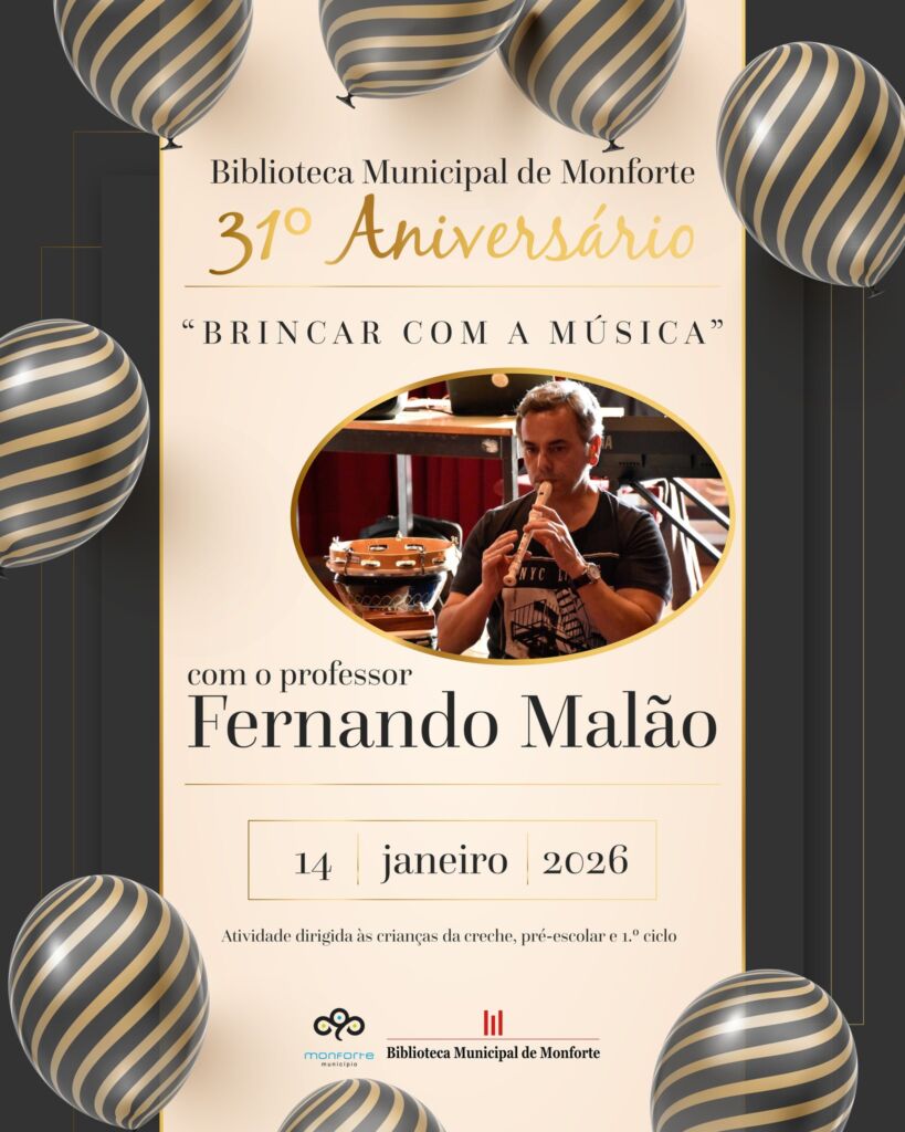 A Biblioteca Municipal de Monforte assinala o seu 31.º aniversário amanhã, dia 14 de janeiro, com uma iniciativa especial dedicada ao público infantil, intitulada “Brincar com a Música”.