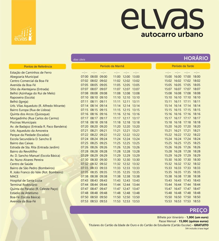 O Município de Elvas procedeu à reformulação do percurso e dos horários do novo serviço de autocarro urbano, tendo em conta as sugestões apresentadas pelos munícipes, com o objetivo de melhor responder às necessidades da população.