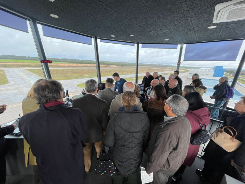 A visita terminou na Torre de Informação de Voo, proporcionando um contacto direto com a operação diária do aeródromo e com os processos que garantem a segurança, a coordenação e a eficiência da atividade aérea.