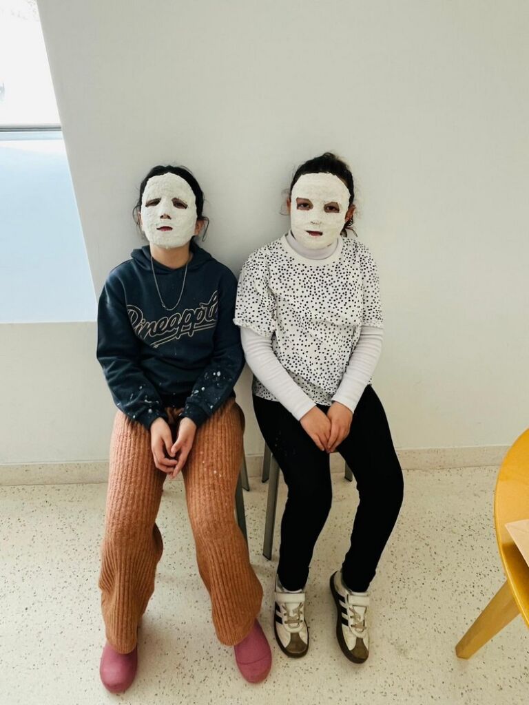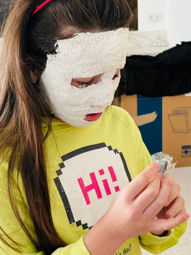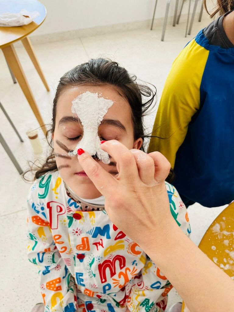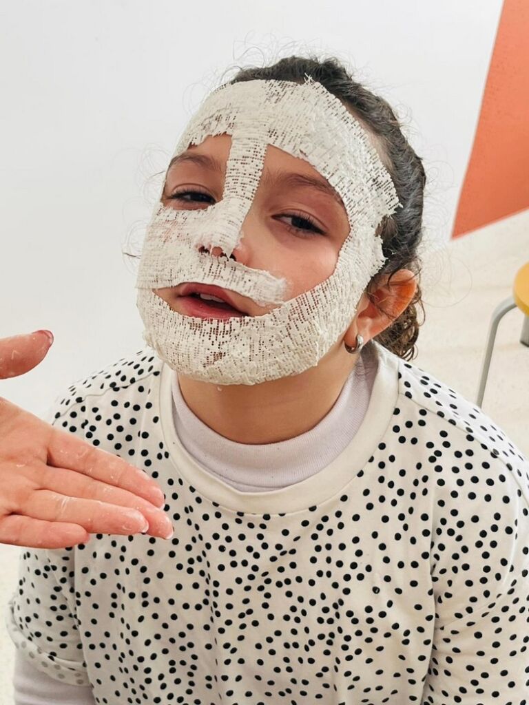 Uma manhã divertida, com as crianças a aprender como se processa a criação de máscaras com ligadura de gesso e, desta feita, com as suas próprias “medidas”.