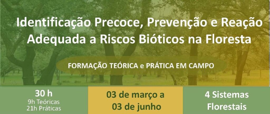 A formação combina sessões teóricas online com práticas indicadas no cartaz oficial do evento, permitindo aos participantes reforçar competências técnicas, promover a gestão florestal sustentável e contribuir para a redução de impactos ambientais e económicos associados a riscos bióticos.