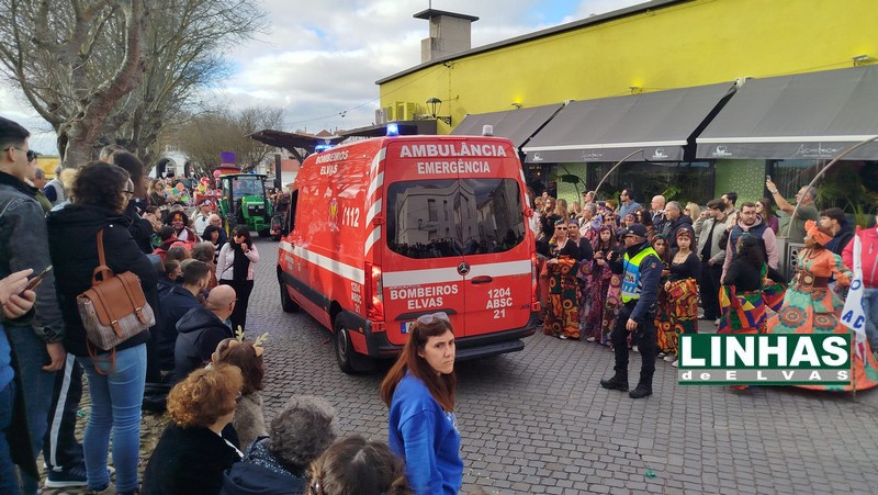 A ocorrência levou à suspensão temporária do corso por alguns minutos, permitindo a rápida intervenção dos Bombeiros Voluntários de Elvas.