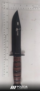 Por fim, foi também detido um jovem de 17 anos por posse de arma proibida. Ao suspeito foi apreendido um punhal, considerado arma da Classe A face ao local onde foi encontrado, com 30,5 centímetros de comprimento total e 12,5 centímetros de lâmina, não tendo sido apresentada qualquer justificação válida para a sua posse em plena via pública.
