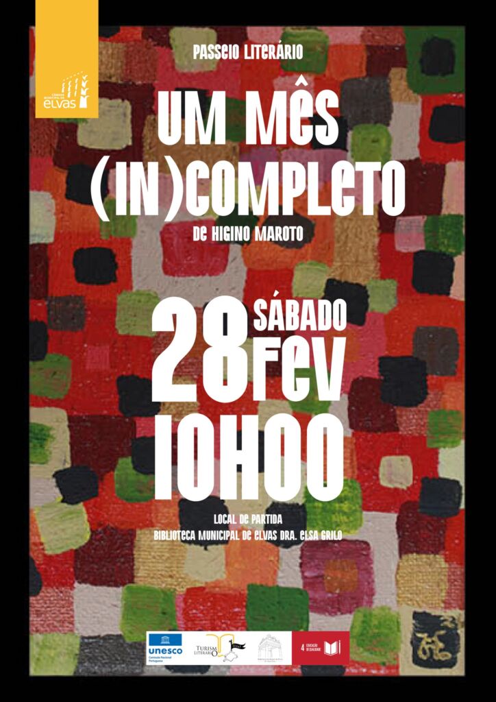 A Biblioteca Municipal de Elvas promove, no próximo dia 28 de fevereiro (sábado), às 10h00, o Passeio Literário “Um Mês (In)Completo”, dedicado à obra de Higino Maroto.