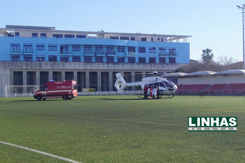O helicóptero do Instituto Nacional de Emergência Médica (INEM) aterrou na tarde desta quinta-feira, 12 de março, no Campo Pedro Barrena, em Elvas, para realizar a transferência de um doente que se encontrava no Hospital de Santa Luzia para uma unidade hospitalar em Lisboa.