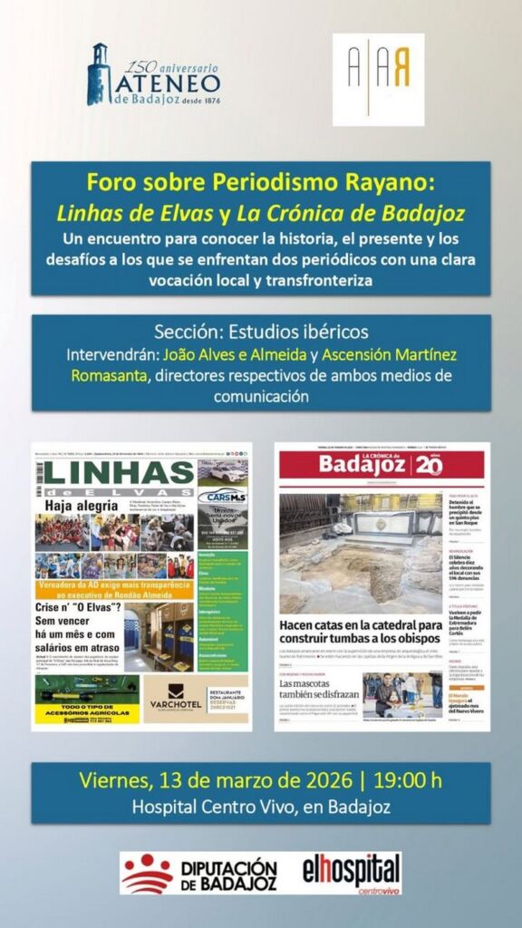 A cidade de Badajoz recebe hoje, sexta-feira, dia 13 de Março, um fórum dedicado ao jornalismo raiano, com a participação dos jornais “Linhas de Elvas” e “La Crónica de Badajoz”.