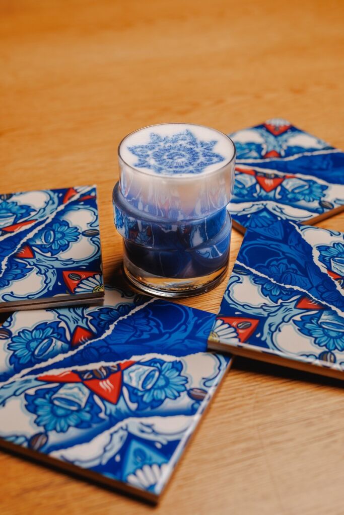 “O azul faz parte da minha linguagem visual e da forma como interpreto a tradição dos azulejos portugueses. Neste projecto foi interessante transportá-lo para o universo do café e ver como a arte se pode tornar numa experiência sensorial. É uma forma diferente de contar esta herança cultural, agora através de uma bebida”, refere Diogo Machado (Add Fuel).