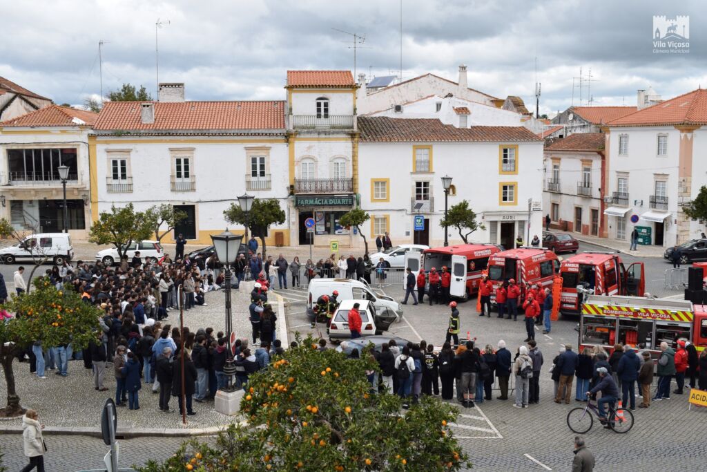 A iniciativa contou com uma demonstração prática de desencarceramento e Suporte Básico de Vida (SBV), levada a cabo pelos Bombeiros Voluntários de Vila Viçosa.