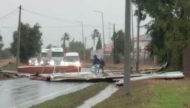 A cobertura de uma loja em Ferreira do Alentejo foi arrancada hoje pelo vento e caiu na Estrada Nacional 2 (EN2), obrigando ao corte temporário da via, sem causar vítimas, revelaram os bombeiros e a GNR.