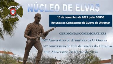 O Núcleo de Elvas da Liga dos Combatentes vai realizar, no dia 15 de novembro de 2025 (sábado), às 10h00, as cerimónias comemorativas do 107.º aniversário da assinatura do Armistício, do 51.º aniversário do fim da Guerra do Ultramar e do 102.º aniversário da fundação do Núcleo de Elvas da Liga dos Combatentes.