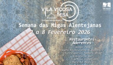 O Município de Vila Viçosa promove, entre os dias 2 e 8 de Fevereiro de 2026, a Semana Gastronómica das Migas Alentejanas, integrada no Festival Gastronómico “Vila Viçosa à Mesa” 2026.