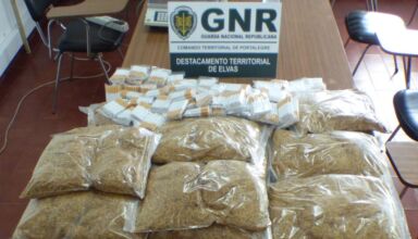 ELVAS: GNR apreendeu 20 quilos de tabaco e 2.040 cigarros