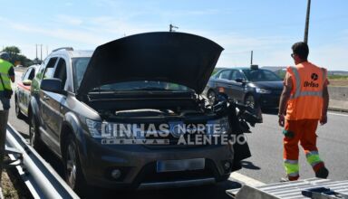 Um automóvel e um veículo pesado de mercadorias colidiram lateralmente na A6, em Elvas, na tarde de 9 de Julho, sem provocar feridos.