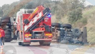 Um veículo pesado de mercadorias, que transportava vinho, despistou-se e tombou na A6, provocando ferimentos ligeiros no condutor, na tarde de segunda-feira, dia 2 de Dezembro, tendo o alerta sido dado às 13,27h.