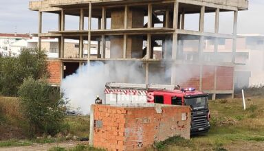 Um pequeno foco de incêndio junto a um prédio em construção no Bairro de São Pedro, em Elvas, motivou a presença de elementos da corporação de bombeiros elvense.