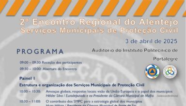 No próximo dia 3 de abril, o Auditório do Instituto Politécnico de Portalegre será palco do 2.o Encontro Regional do Alentejo de Serviços Municipais de Proteção Civil (SMPC).