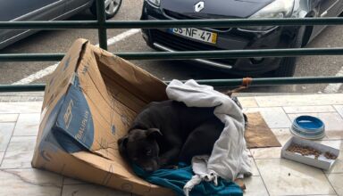 Um cão que aparenta ter traços da raça de Pitbull foi encontrado pelo moradores do Bairro de Santo Onofre na madruga desta quarta-feira, 31 de Dezembro. O animal estava amarado com uma trela ao gradeamento da Clínica Veterinária Santo Onofre, visivelmente desorientado e agressivo.