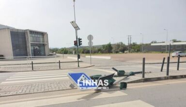 Um semáforo, instalado na Avenida de Badajoz, junto ao Coliseu de Elvas, foi derrubado por uma viatura no domingo, dia 27 de Março.
