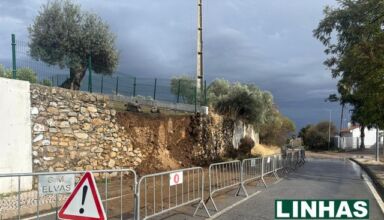 Um troço da antiga Estrada Nacional 4, junto ao Continente, na cidade de Elvas, ficou cortado à circulação automóvel na manhã desta quarta-feira, dia 5 de Novembro, depois de um muro ter desabado como consequência do mau tempo que se abateu na região.