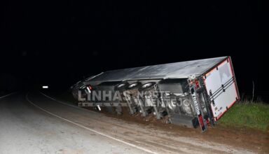 Um camião tombou sem provocar feridos na Estrada Nacional 373, entre Elvas e Campo Maior, junto à herdade das Espadas.