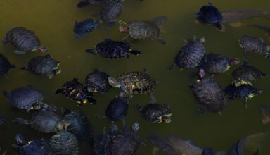 Do Rio Guadiana, em Badajoz, foram retiradas 4.400 tartarugas-da-Flórida nos últimos três anos com a ajuda de armadilhas com o intuito de controlar esta espécie invasora.