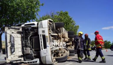 O despiste de um pesado de mercadorias, carregado com gravilha, provocou hoje um ferido leve na circular da cidade de Elvas, junto ao Estádio de Atletismo.