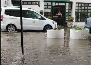 A acumulação de muita água, derivada da precipitação intensa, na Rua do Parreiral, em Sousel, causou uma inundação que interditou a via.