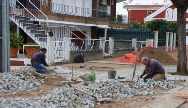 A empreitada de colocação de calçadas, em cubos de granito, prossegue agora, com a requalificação a ter início na Avenida da Piedade, junto ao tabuleiro do Parque da Piedade.
