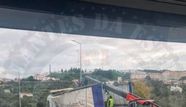 Decorrem neste momento, nesta quinta-feira, 14 de Novembro, as complexas operações de remoção das mercadorias de um veículo pesado cuja carga cedeu e obrigou à imobilização do camião no local.